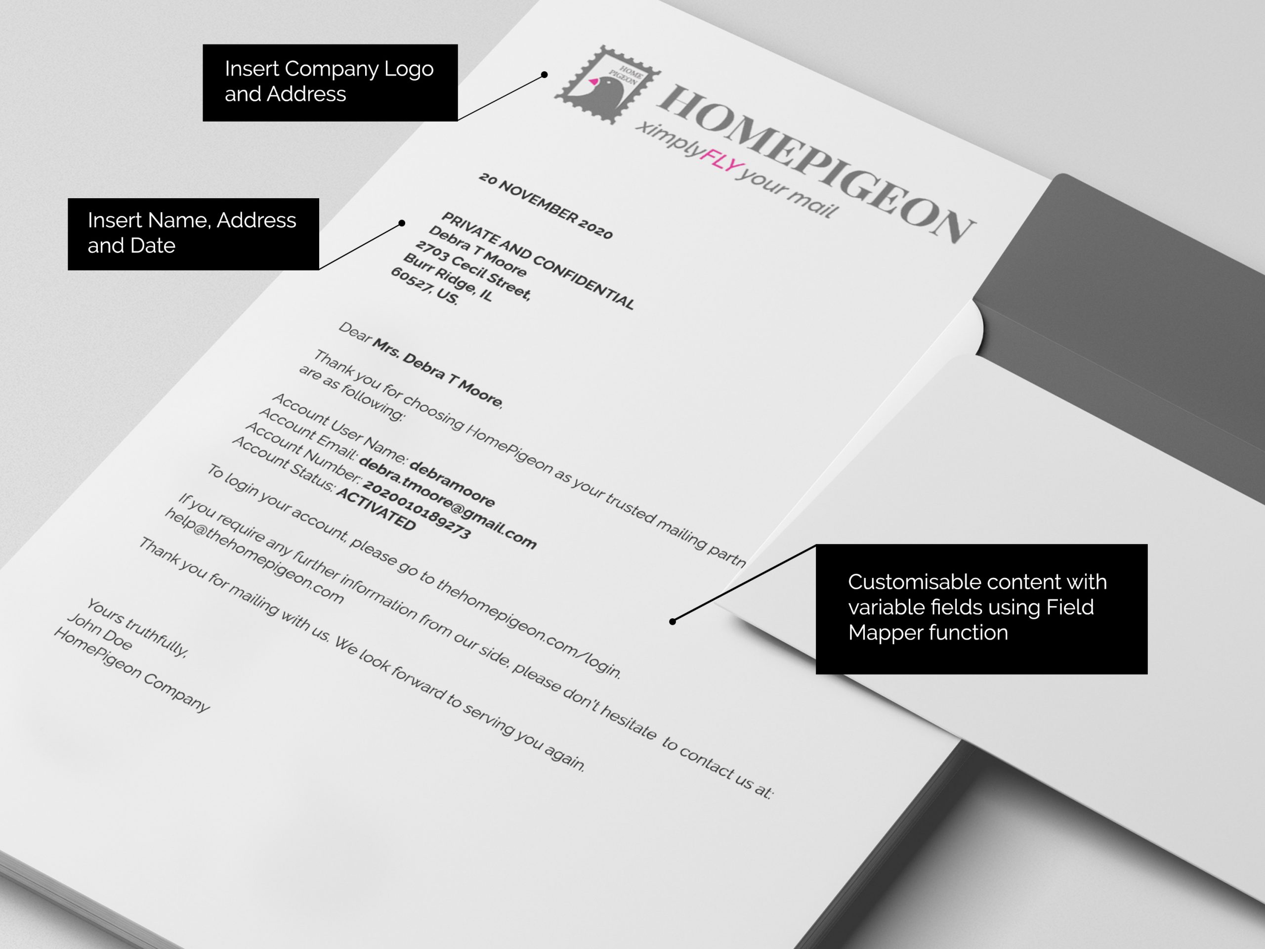 • Each recipient letter contains the same contents with allowed variable fields. Use the field mapper to create additional fields/information you wish to add.